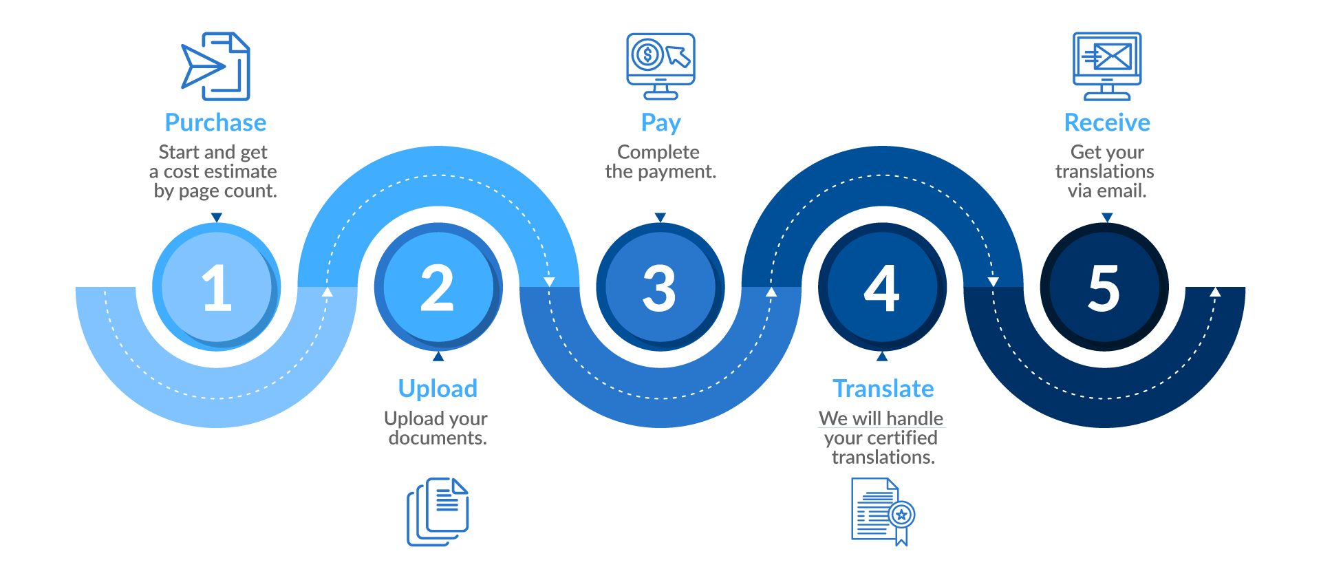 Follow these simple steps to quickly and accurately get your certified translations. From uploading your documents to receiving them translated, we make it easy.