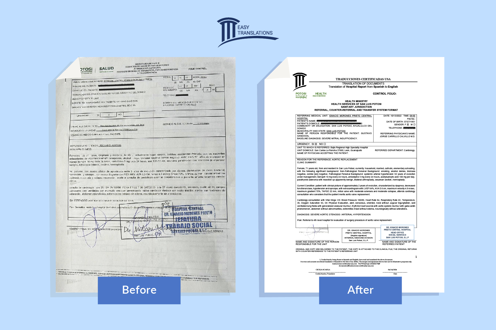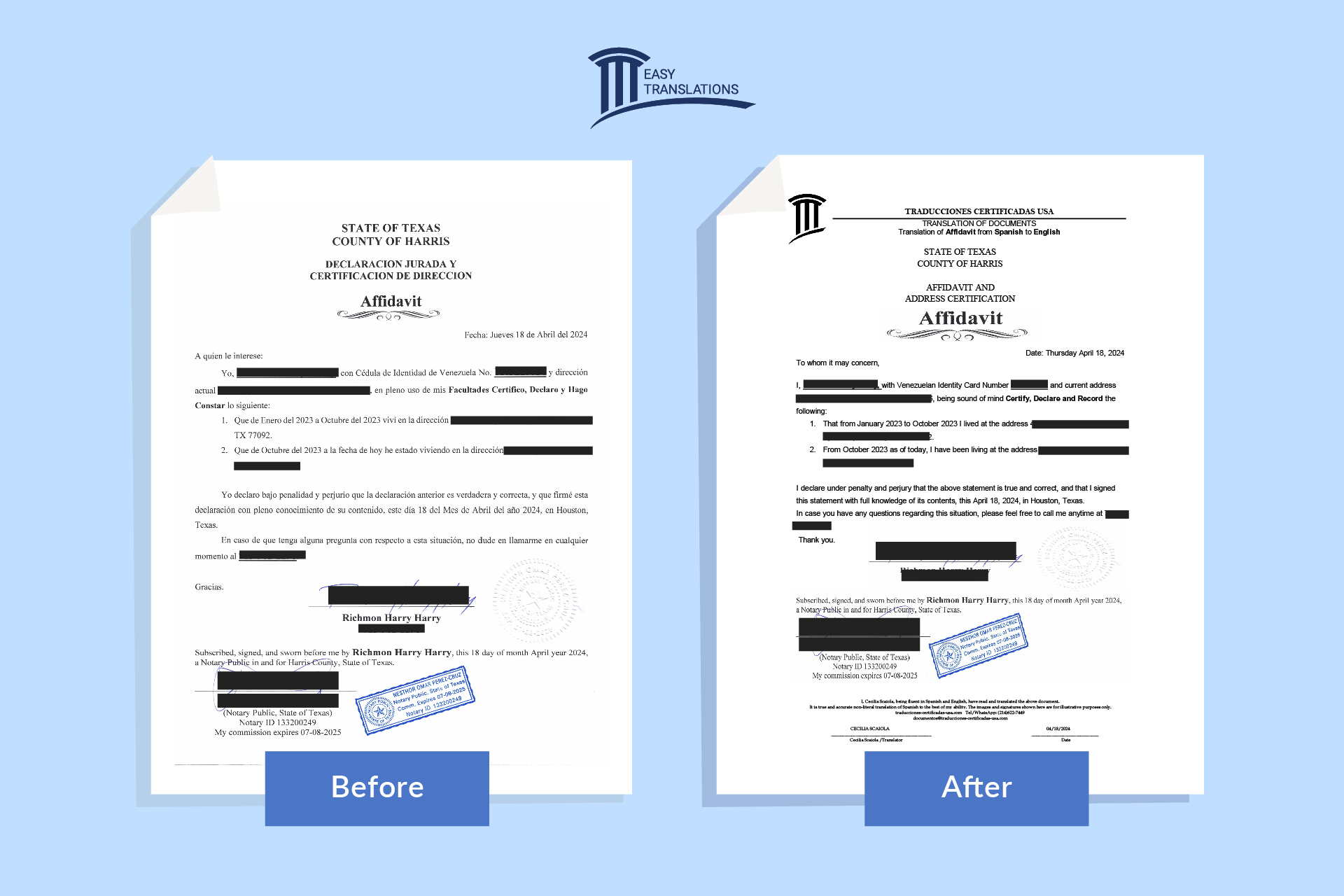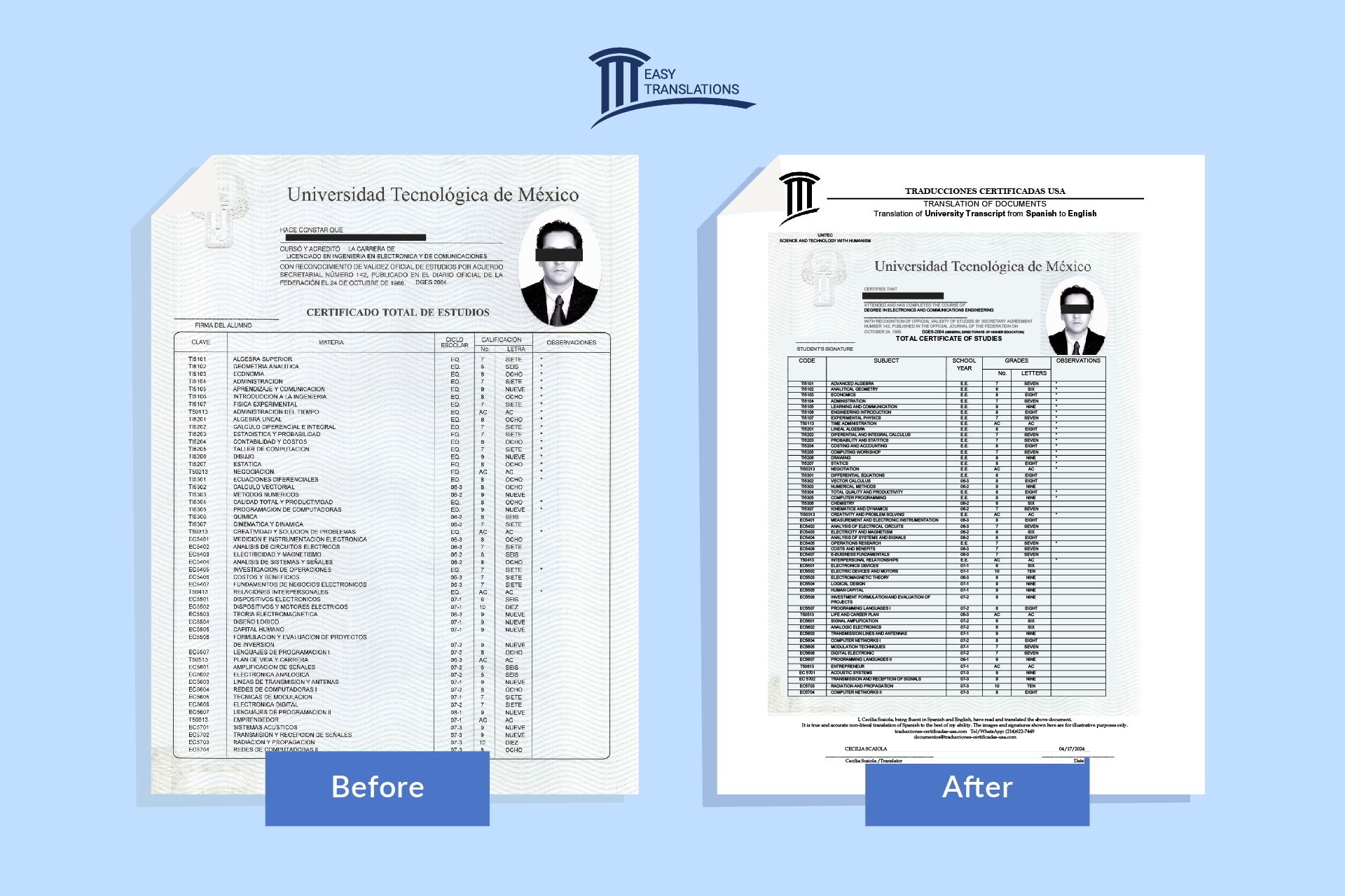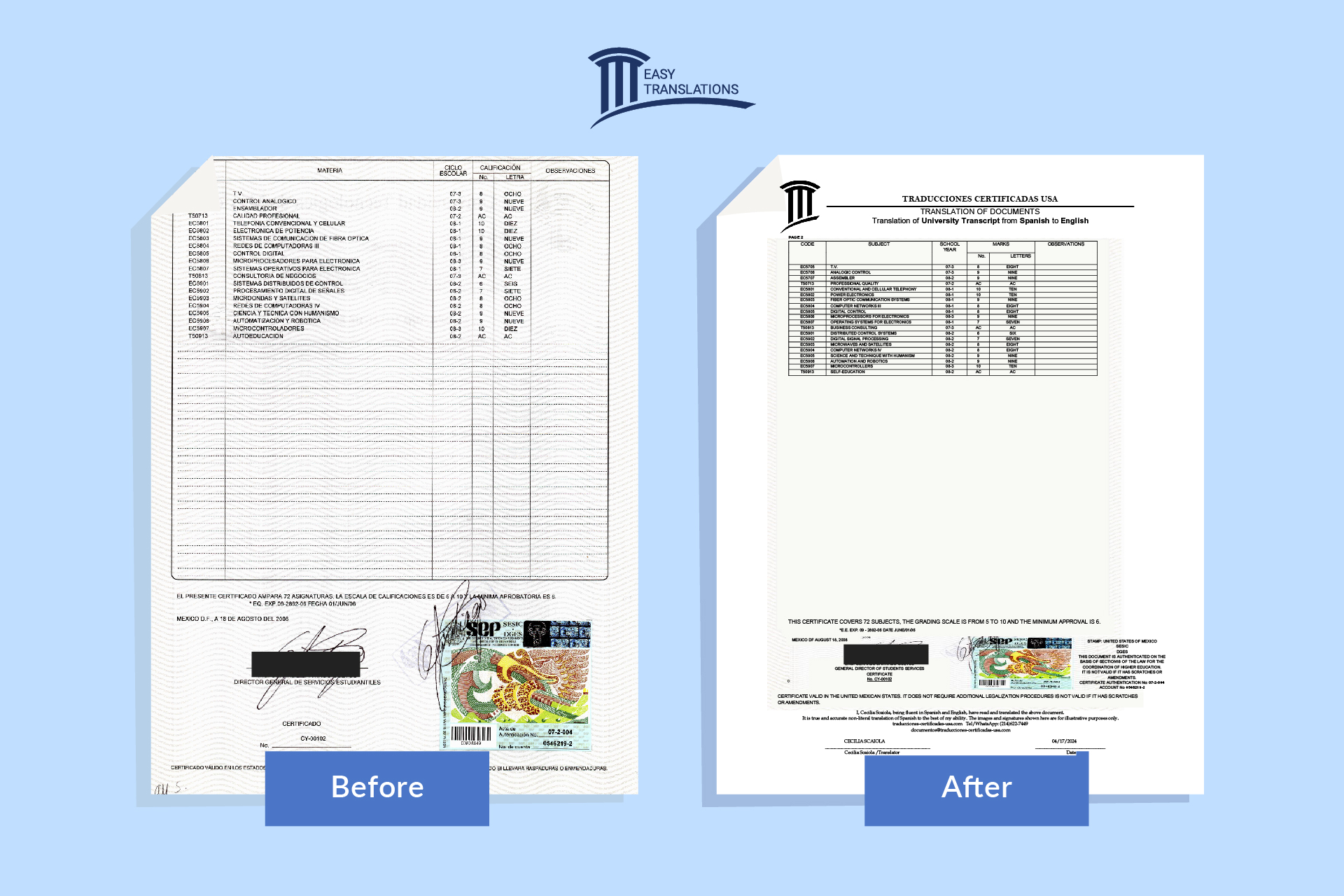 «Thanks to EasyTranslation, I was able to translate all my documents for my immigration process quickly and accurately. Their service gave me the peace of mind I needed, knowing that my papers would be ready and accepted by the authorities. I’m very grateful!»